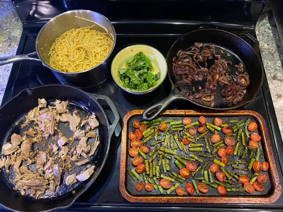 Asparagus and grilled cherry tomatoes with balsamic vinegar