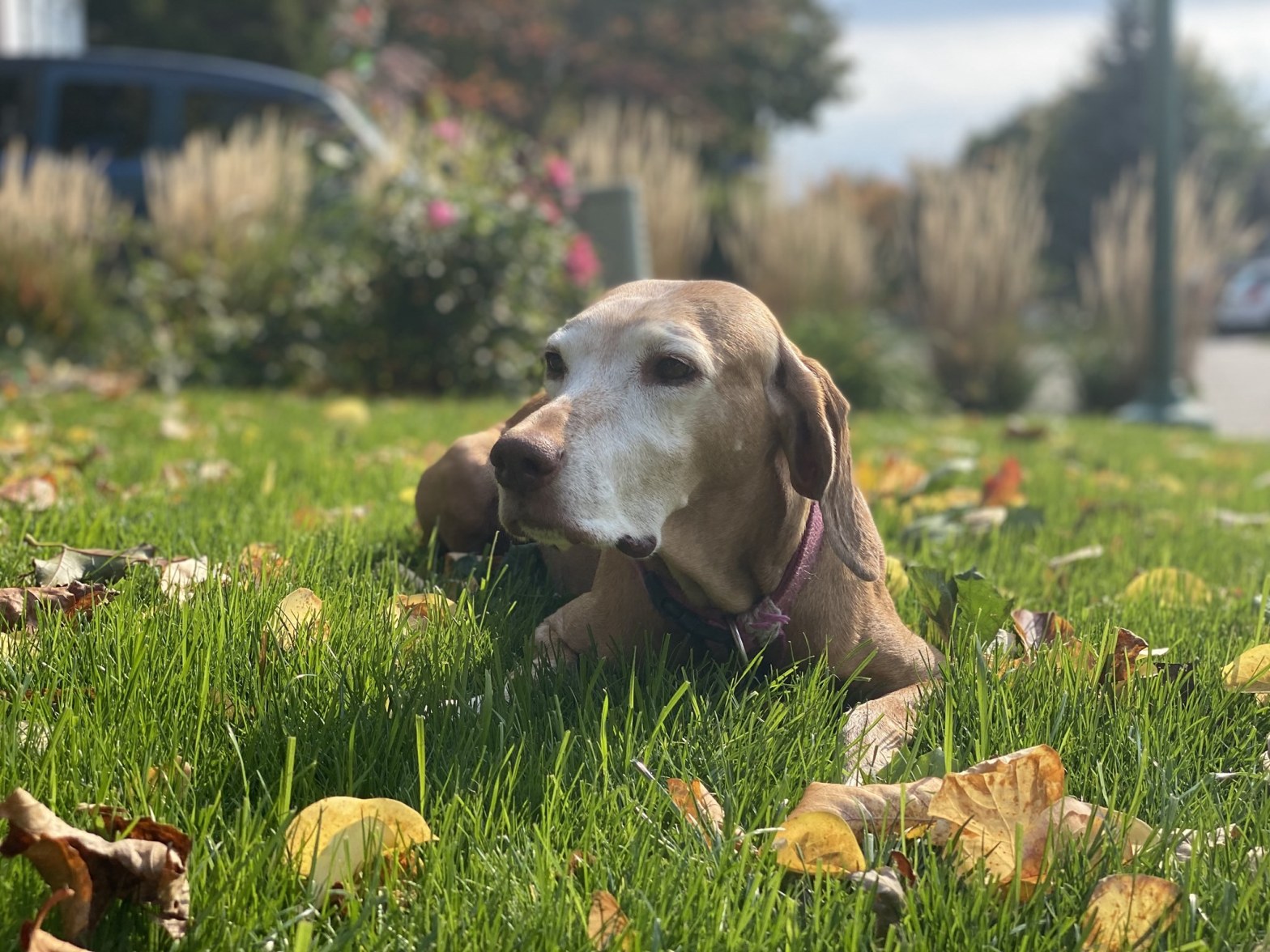 You were lying, enjoying the sun and soft cool grass, being a cute dog.