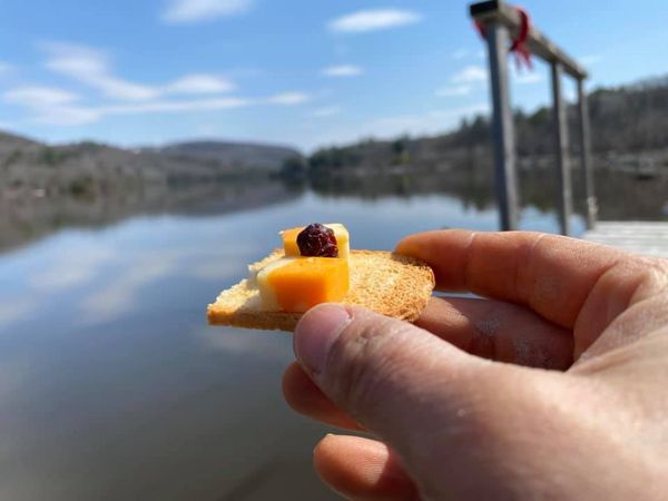 The little cheddar cheese tastes so good in the sun on the river bank!