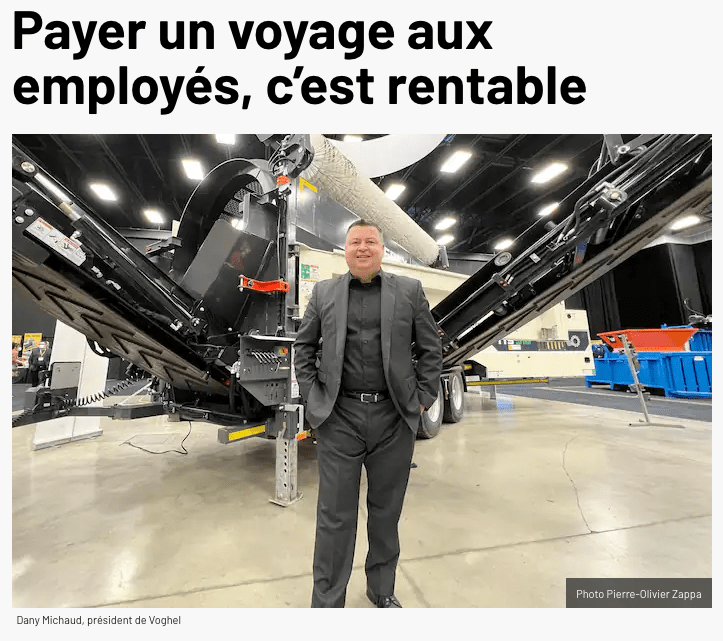 The article is in french. The subject is recurring and not new. The owner of a business recognizes the work of his employees and rewards them with a company trip to Disney Land with their family.